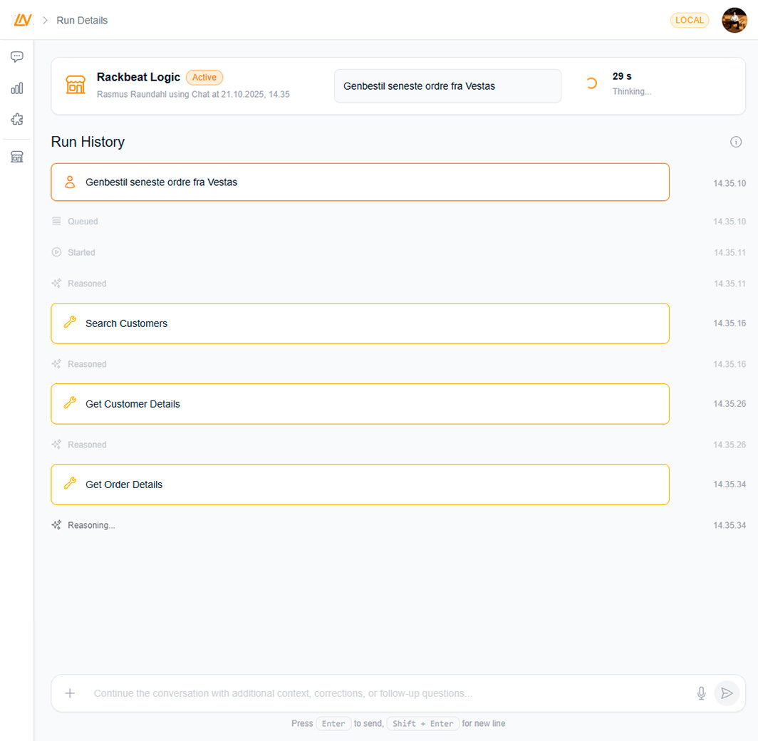 Bruger du Rackbeat til at styre ordrer, kunder og lager? Så ved du sikkert hvor meget tid, der går med manuelle rutiner: indtastninger, kontrol, rapporter, mails og Excel-ark. Med Rackbeat Logic kan du lade en AI-assistent tage over – og få dit system til at arbejde...